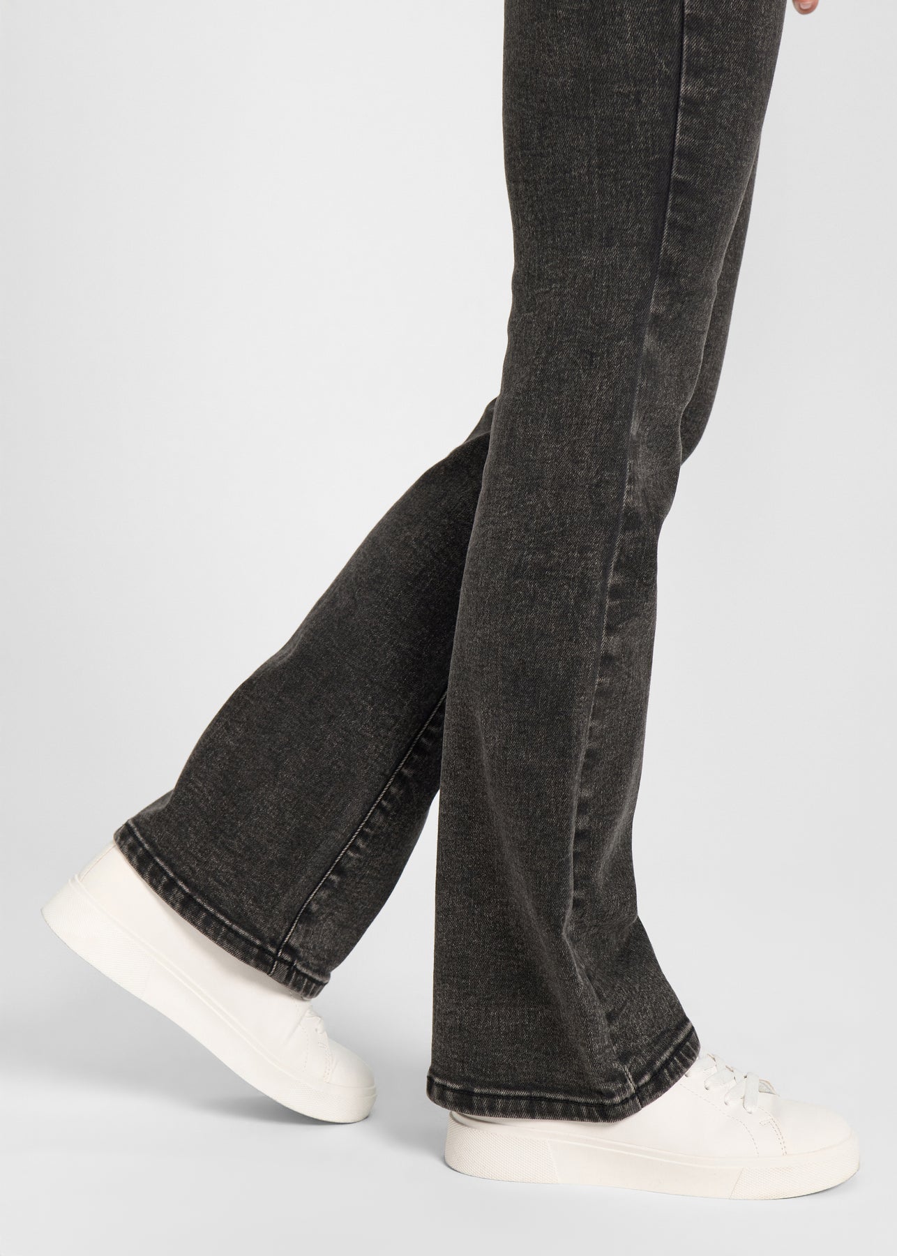 Perfect Jeans - Bootcut - Shadows får du et par mørkegrå jeans i et klassisk og tidløst denimlook, med alt det stræk og bevægelsesfrihed, du kender fra Perfect Jeans. Vores Bootcut Jeans er designet til at sidde tæt omkring talje, hofter og lår og får et elegant svaj fra knæet og ned, som giver et flatterende og elegant udtryk. Bootcut er højtaljede og har to lommer foran og bagpå. Jeansene er udviklet med en speciel vævning, som gør at farven samt formen holder både efter brug og vask. Disse bootcut fit jeans til kvinder passer perfekt til både hverdag og til de specielle anledninger.
